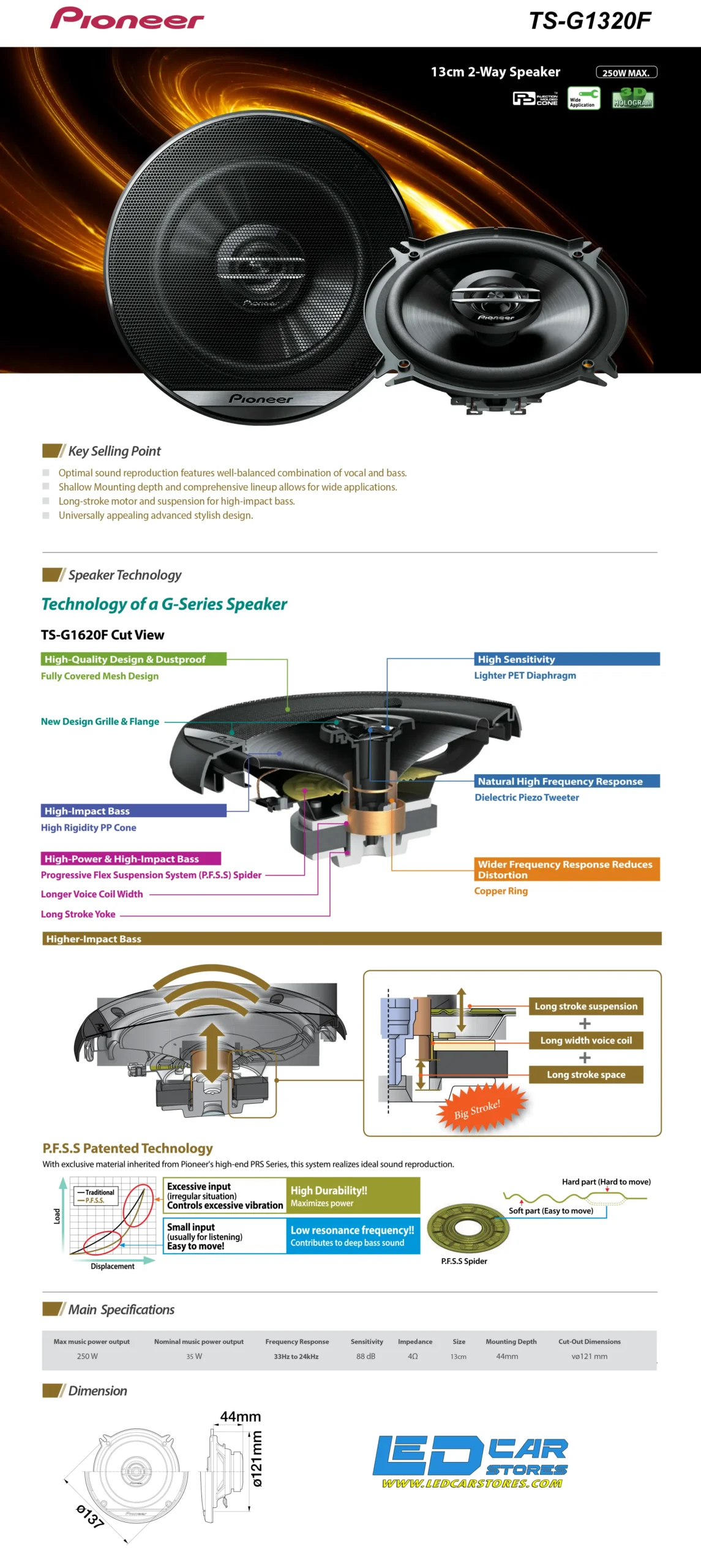 - قوة عالية وصوت جهير قوي: نظام تعليق طويل السكتة (P.F.S.S) وملف صوتي أكبر يوفران جهيرًا عميقًا وقويًا.