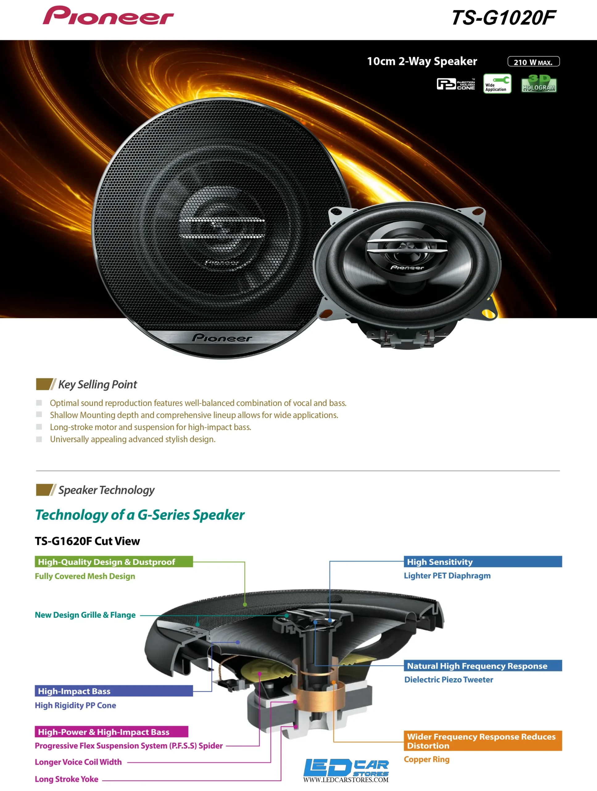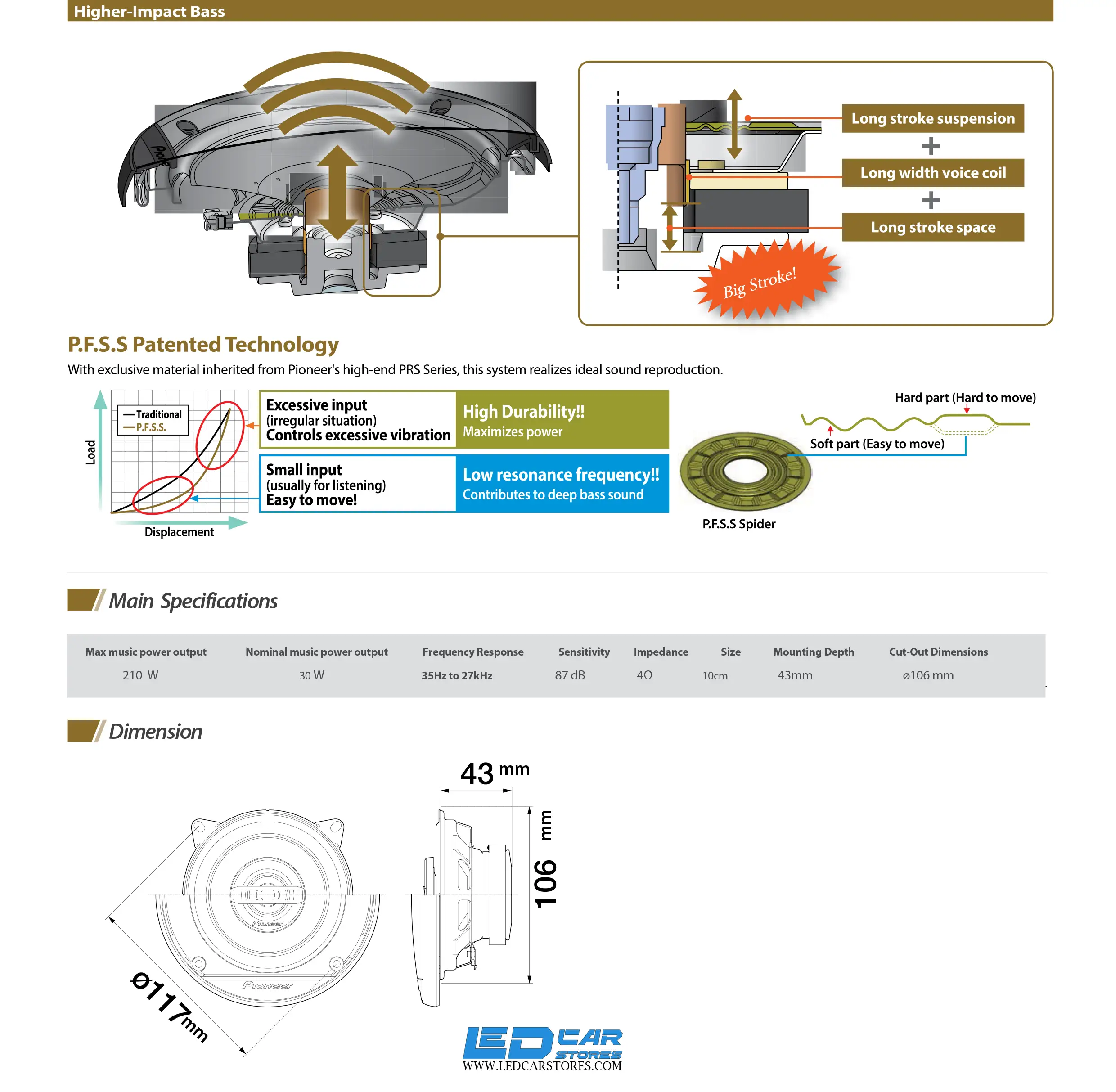 - Zarif koruma ağı: Hoparlörü koruyan ve estetik bir dokunuş katan Pioneer logosunu taşıyan siyah koruyucu ağ ile birlikte gelir.
